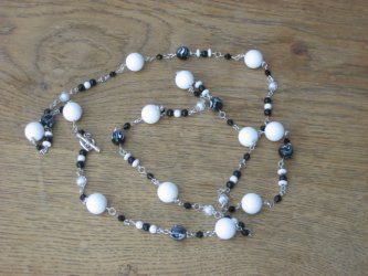 1 van mijn favorieten : zwartwitgeketteld : toen ik de eerste versie maakte, was mijn stiefdochter er zo wild van dat ik ze hem gaf en ze opnieuw maakte voor mij. de witte kralen komen van een gesloopte ketting van de rommelmarkt.