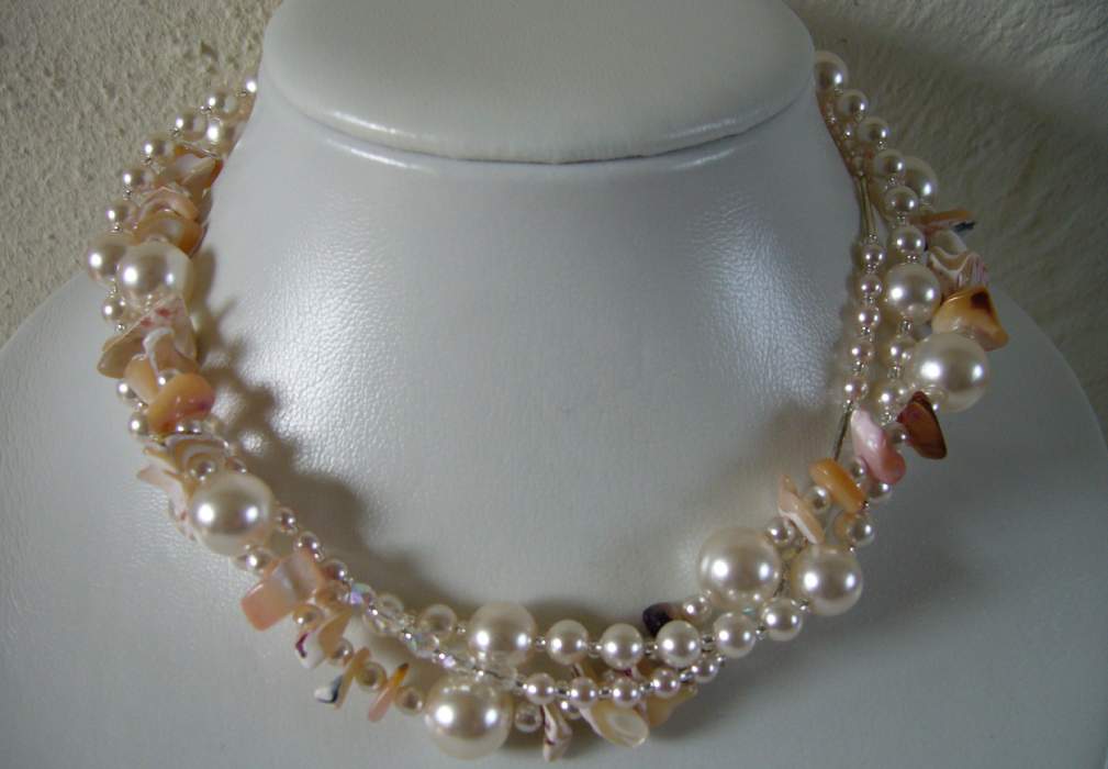 heel erg mooi vooral je tweede ketting!! parels lenen zich eigenlijk overal voor , ik vind die combi van parels met schelpen heel geslaagd