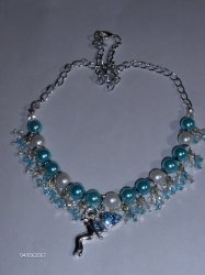 Je hebt mooie creaties gemaakt, maar bij de eerste vind ik de hangers overdone. De ketting is op zich al erg spetterend, zonder hanger vind ik hem mooier.