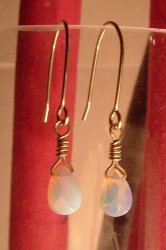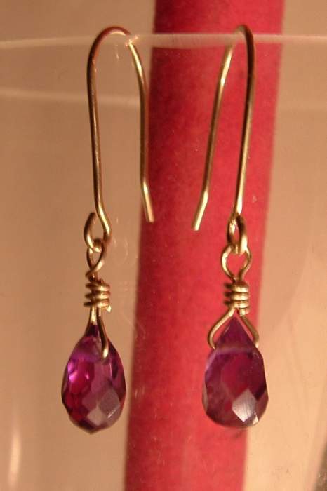 Mijn stiefmoeder word 50 jaar en geeft zaterdag een groot feest. Ik wilde iets speciaals maken en ik weet dat ze van goud houd dus ik heb mijn eerste creaties van 14 karaat goud gemaakt. Een set met gefaceteerde Amethist druppels en een met gefaceteerde Opaliet druppels. Ik heb ze heel simpel gehouden vooral omdat ik nog niet eerder met goud gewerkt heb en het nogal eng vond (is heel erg duur tegenwoordig). De foto's ook met mijn nieuwe camera gemaakt. 's Avonds en binnen dus voor verbetering vatbaar. En ook nog eens niet de beste achtergrond maar ik had haast (het is al laat
