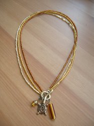 Deze is op bestelling gemaakt, ik had een tijdje geleden een soortgelijke ketting in het wit aan en kreeg de vraag om een soorgelijke in bruin/goud tinten te maken.