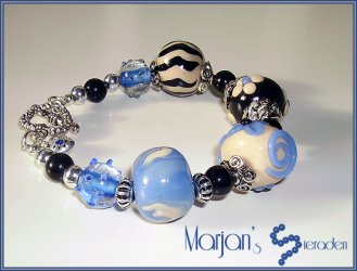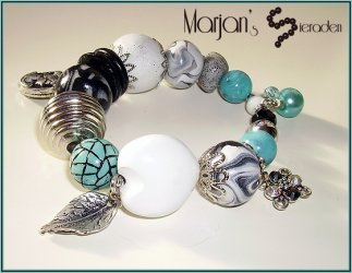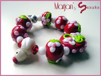 Armbandje met o.a. Fimo-kralen, glaskralen en metallook kralen.