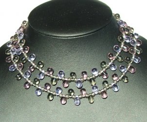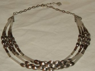 De ketting is gesloten doordat de linker kant door de rechter kant heen gaat, je kan h'm dan nog wat verstellen (iets losser bv) maar hij kan niet helemaal los omdat niet alle kralen door de ene kant van de ketting passen.. zeg maar..