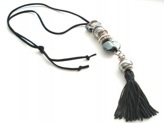 ik vind die lange ketting wel heel gaaf. Die grote kralen, is dat trouwens keramiek?
