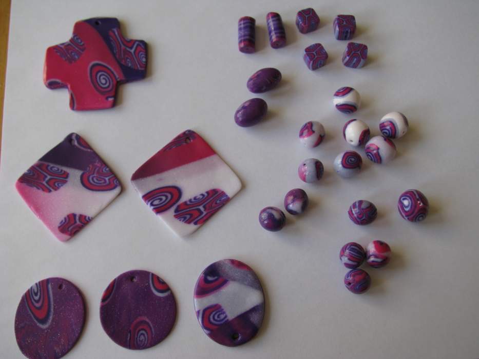 Ik heb vandweek voor het eerst gestoeid met Fimo. Ik had 1 cane gemaakt en daarmee ben ik vanalles gaan uitproberen. Dit is het resultaat: