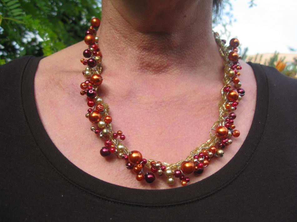 dag Karin en Moniek, erg bedankt voor jullie reactie. De ketting is gemaakt door parels aan zilverdraad te rijgen en hier en daar een draai te geven aan de draad.