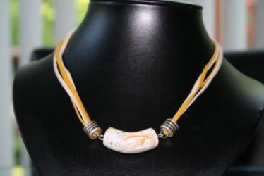 Hoe maak je zo'n grote kraal. Ik bedoel, hoe zorg je ervoor dat hij "in model blijft" bij het bakken. Je kunt 'm niet neerleggen, want dan wordt de achterkant plat.