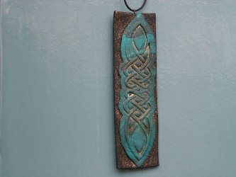 Een hanger, aan een simpele zwarte veter gehangen.