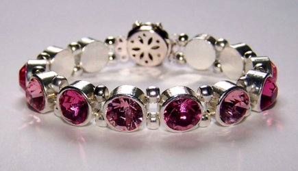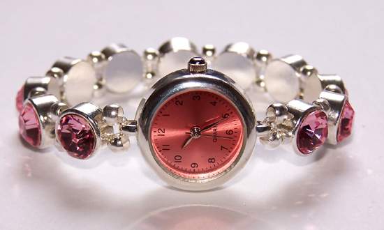 Onlangs heb ik een bling bling strashorloge gemaakt en ik kon het niet laten om ook een roze te maken. En nu ook een armband met twee verschillende roze tinten stras: