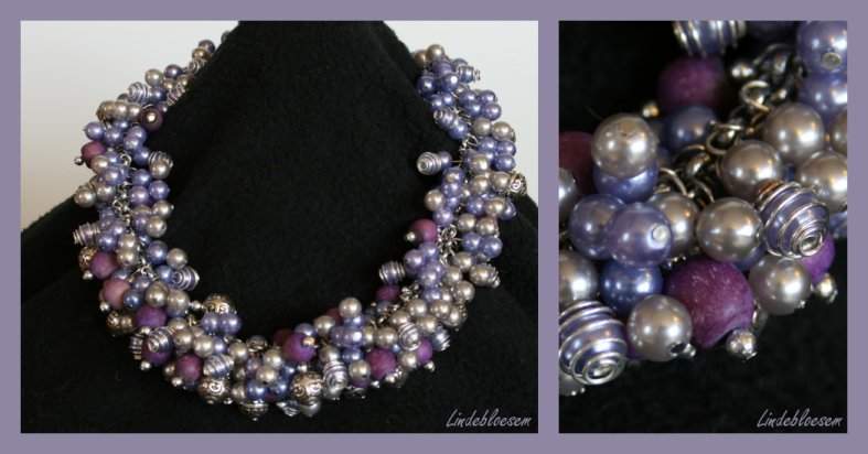 Omdat ik het altijd leuk vind fotos van andere te bekijken, zal ik ook een foto van mijn zojuist gemaakte creatie laten zien. De ketting is nét een half uurtje af, en het is een verjaardagscadeautje voor mijn zus. Ik vind in totaal echt een feestelijke ketting geworden, dus ben er erg blij mee