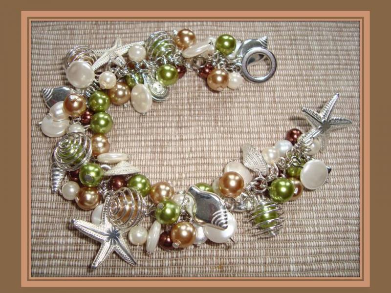 Hier ben ik afgelopen dagen druk mee bezig geweest! En nu kan ik hem gaan dragen bij mijn jurkje! Het is een armband die ik gemaakt heb met splitringetjes, spiraalkralen, (zoetwater)pareltjes, kettelstiften en een zeeschelpenmix van creadream! wat vinden jullie ervan?