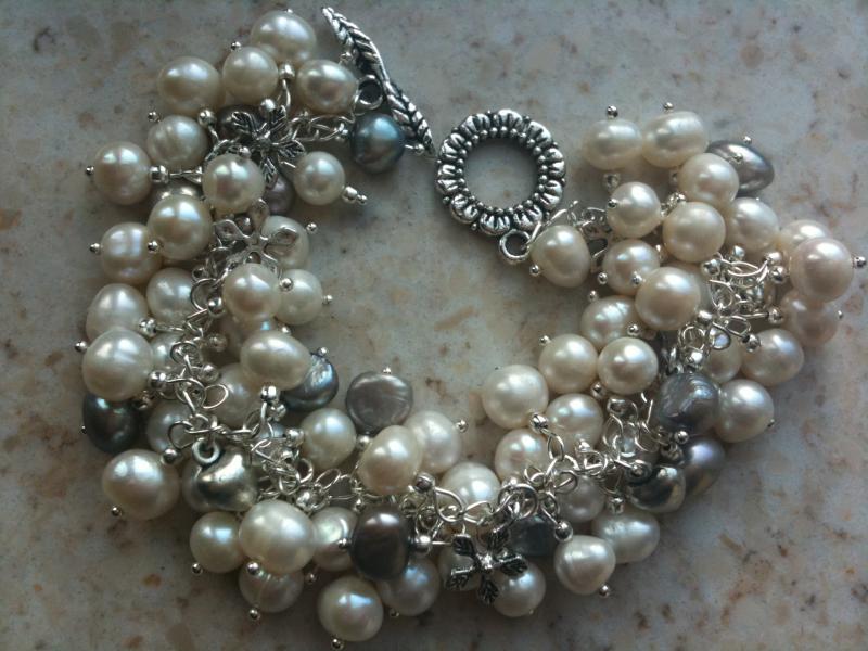Mooie armband, leuk ook dat er een paar grijze parels tussen zitten. Dat breekt een beetje. :D