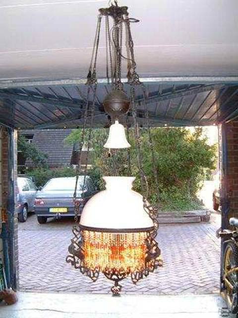 Een collega van mij heeft een oude olielamp (Hang-) en is op zoek naar een kralenpakket waarmee je deze olielamp kunt ?aankleden?. Vroeger had je daar kant en klare pakketten voor en hij wil graag weten waar deze nog te koop zijn. De omtrek is ongeveer 94 cm. Hij is al een tijdje op zoek, maar de meeste zaken weten niet eens waar je het over hebt. Heeft een van jullie tips?