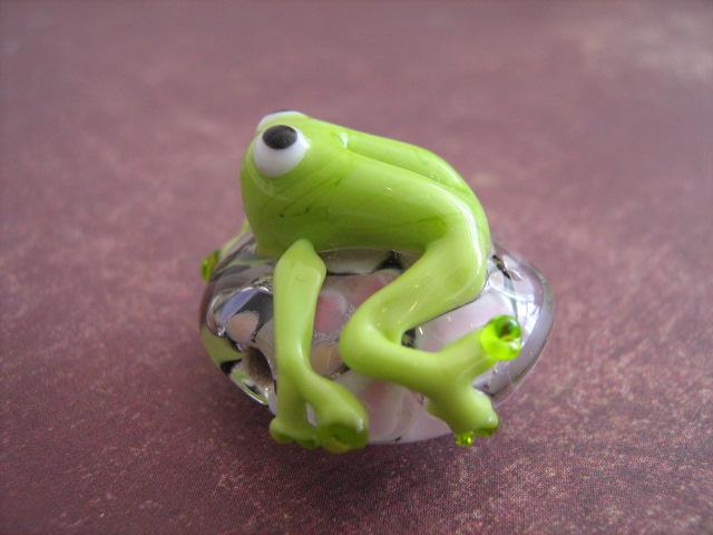Deze kikkerkraal hen ik een tijdje terug gemaakt en het is een van de eerste waar ik stiekem wel trots op ben omdat hij redelijk goed is gelukt. Helaas mag je maar 1 foto plaatsen maar de onderkant is een soort encased-flower-effect.